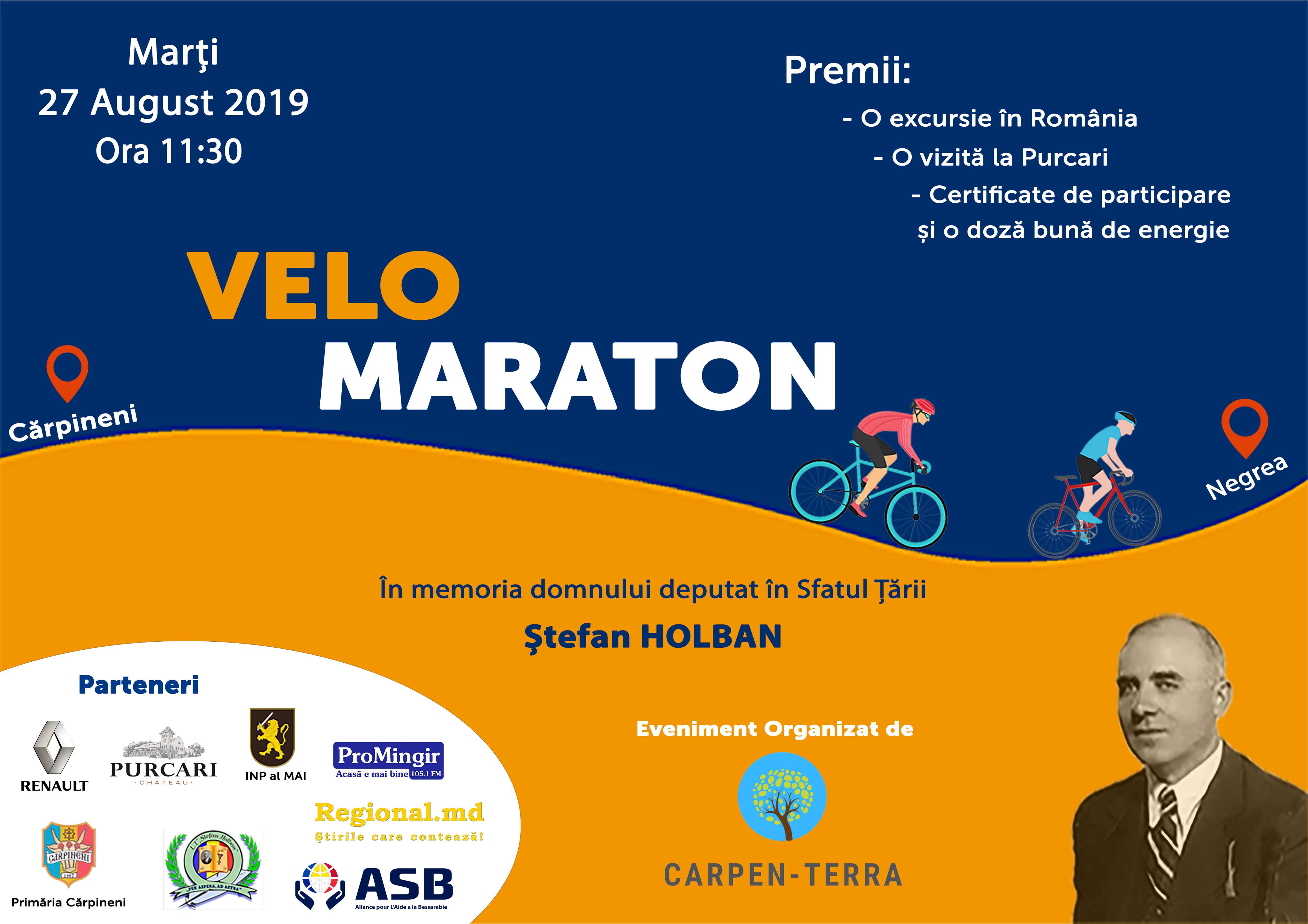 « Toate Evenimente Acest eveniment a trecut. Velomaraton 2019 in memoriam Ștefan Holban 27 august 2019 @ 11:00 - 13:00 « Masă rotundă În data de 27 august 2019, ora 11:00 se va organiza Velomaraton in memoriam Ștefan Holban. Pornirea de la Liceu. Pot participa băieți și fete pe categorii aparte: 1. copii, inclusiv clasa 4 2 elevii clasele 5-8 3. elevi clasele 9-12 Premii: locul I – excursie in România, locul II – excursie in Moldova, locul III – premii de la firma Renault Moldova. Participanții sunt rugați să se înregistreze aici. Vă aștept cu drag Similare + Google Calendar+ iCal Export Detalii Data: 27 august 2019 Timp: 11:00 - 13:00 Eveniment Categories: sport, velomaraton Eveniment Tags:eveniment, sport, velomaraton Organizator Liceul Teoretic ”Ștefan Holban„ Telefon: 373 269 28251 Email: ltcarpineni@yahoo.com Sit web: liceu.carpineni.ro Loc de întâlnire Liceul Teoretic ”Ștefan Holban” Independenței 28 Cărpineni, MD3420 Moldova, Republic of + Harta Google Sit web: liceu.carpineni.ro Partajează:Dă clic pentru a partaja pe Facebook(Se deschide în fereastră nouă)Dă clic pentru partajare pe WhatsApp(Se deschide în fereastră nouă)Dă clic aici pentru a partaja pe Skype(Se deschide în fereastră nouă)Clic pentru imprimare(Se deschide în fereastră nouă) Similare